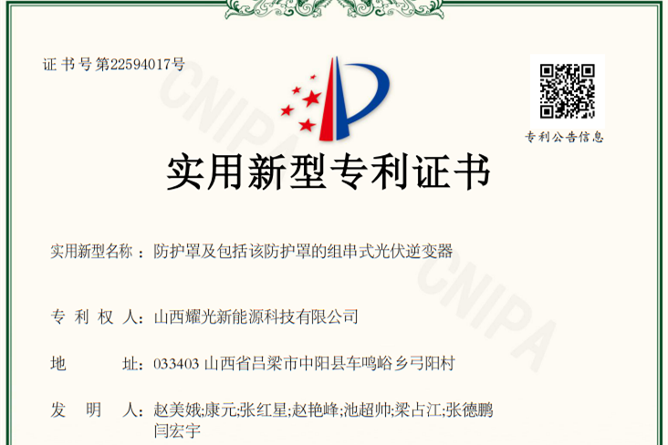 再獲殊榮:榕耀山西公司耀光電站榮獲兩項(xiàng)實(shí)用新型專利