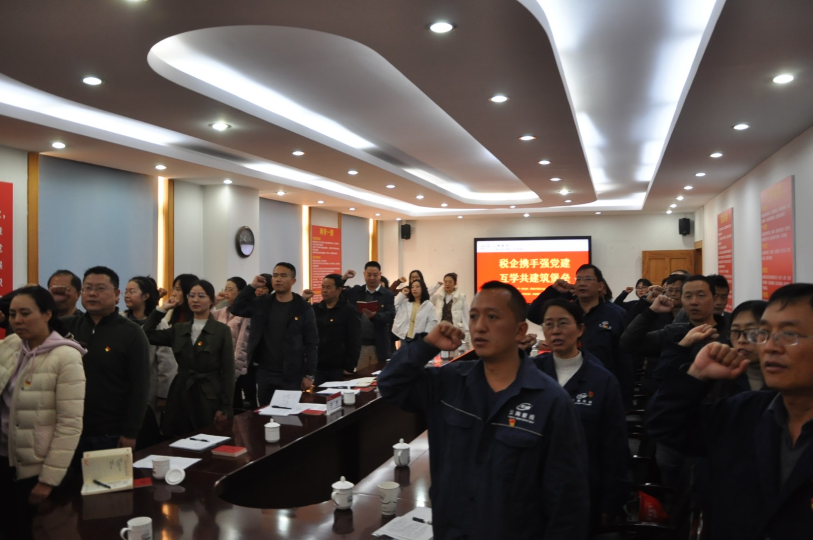 在黨建交流會上,昆明鹽礦黨委副書記、紀(jì)委書記劉勇介紹了昆明鹽礦的基本情況;安寧市稅務(wù)局機關(guān)第一黨支部書記于芳介紹了安寧市稅務(wù)局基本情況并領(lǐng)學(xué)了《黨章》相關(guān)內(nèi)容;昆明鹽礦機關(guān)黨支部書記道繼炯領(lǐng)學(xué)十九屆五中全會部份內(nèi)容。安寧市稅務(wù)局管理分局黨支部張琪、安寧市稅務(wù)局第一稅務(wù)分局黨支部楊艷宗同志分別就個稅、社保費相關(guān)政策進行宣講,并進行現(xiàn)場答疑解惑;安寧市稅務(wù)局李一和昆明鹽礦質(zhì)量管理中心黨支部書記祝建紅分別作黨建工作交流發(fā)言。